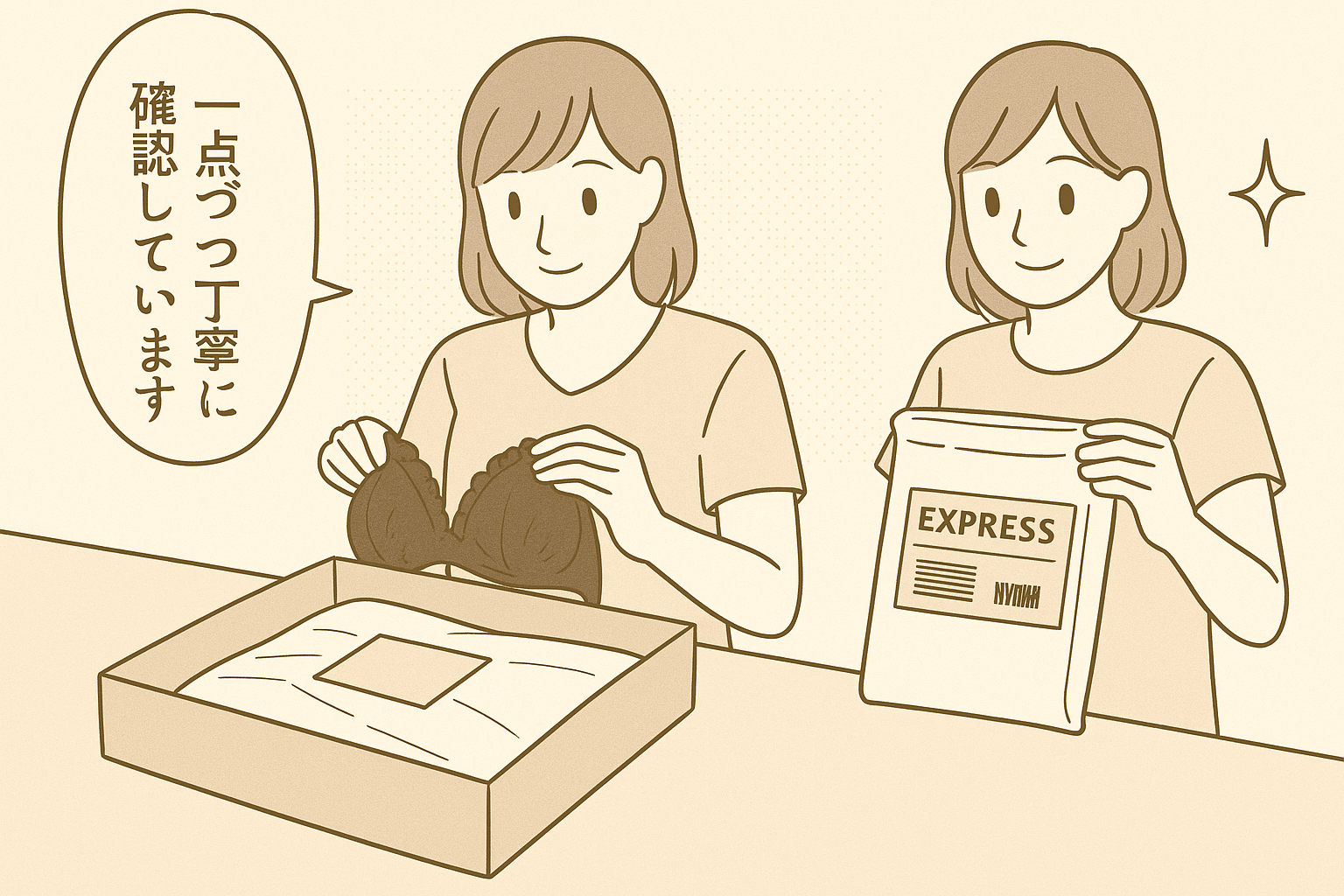 実店舗と同じように、一点ずつ検品して丁寧にお届けします。