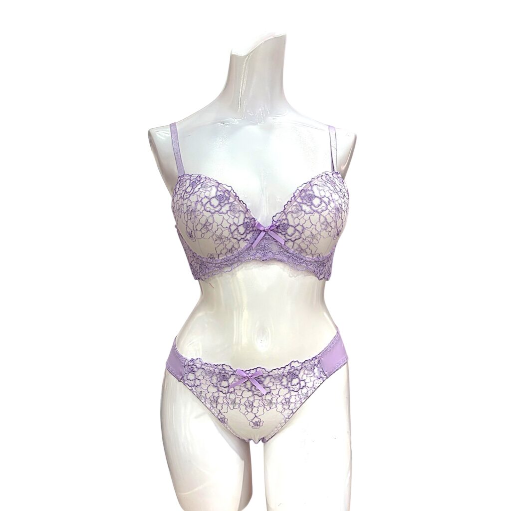 ラベンダーフローラルレースブラ&ショーツセット(BCDカップ対応)