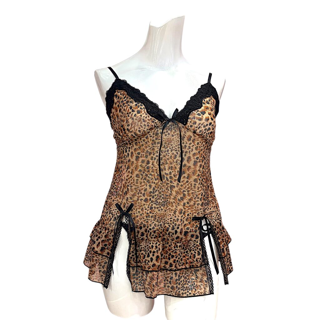 レオパードシフォン スリップ&サイドリボンショーツセット